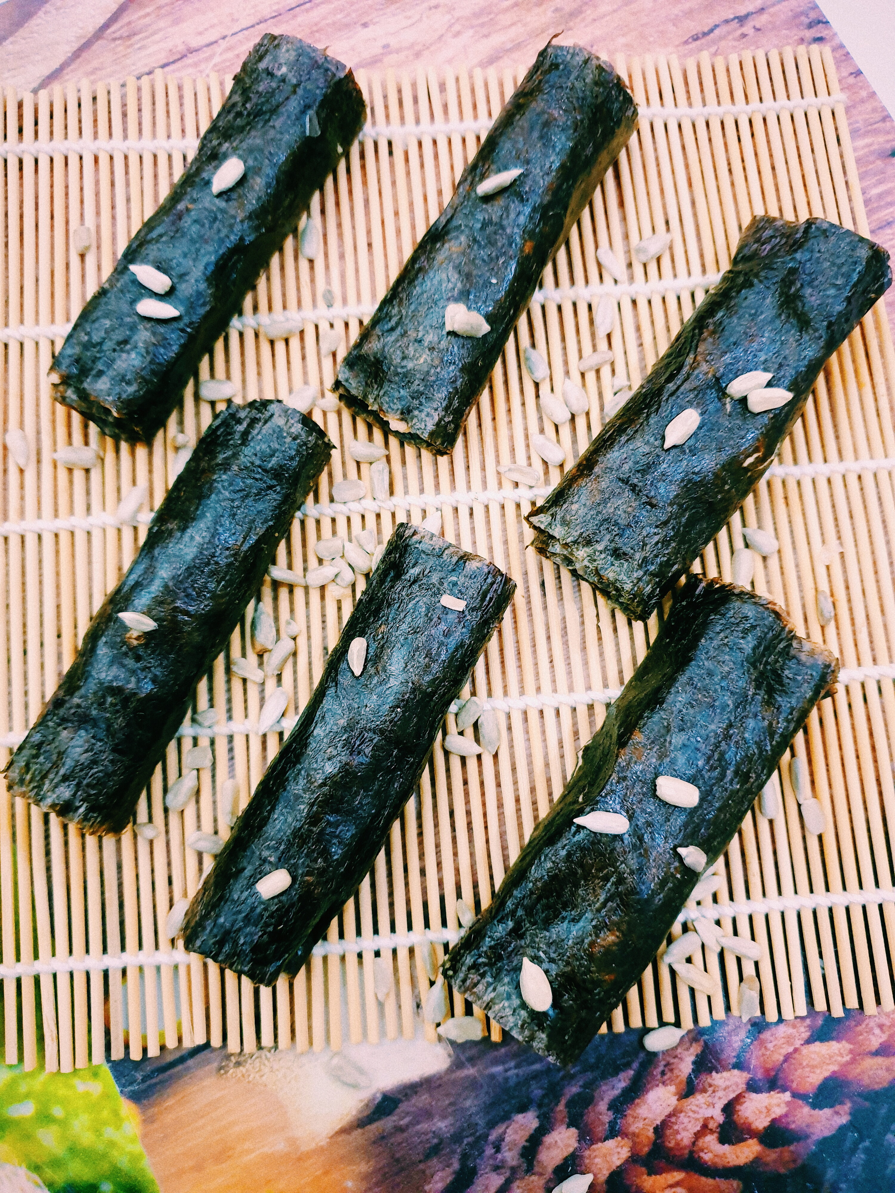 Начинка любая, мне нравится: помидор, авокадо, салат романо. Суть в том, что лист нори вместо риса смазываю ореховым соусом: я делаю из кешью, очень нежный получается.