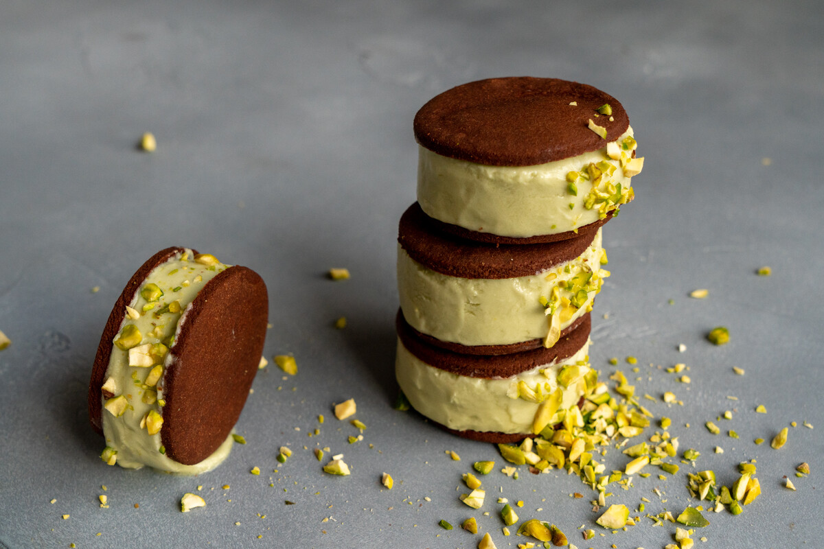 Бананы чистим, разрезаем, сверху смазываем урбечем, поливаем растопленным шоколадом с орешками и убираем в морозилку на пару часов — готово!